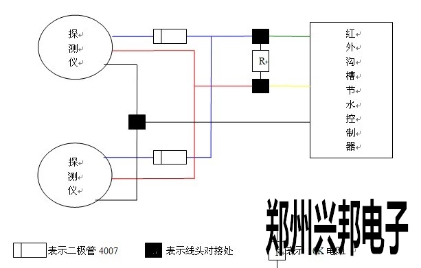 一臺紅外溝槽節(jié)水控制器連接兩個紅外探測儀線路修改說明