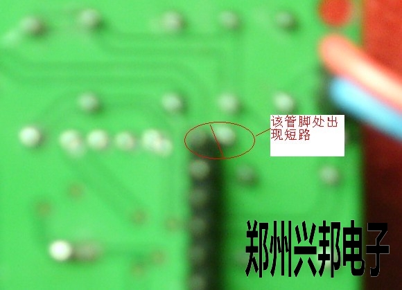 在主板背面測(cè)出二極管和指示燈管腳處電路出現(xiàn)短路。(如下圖所示)