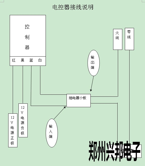 1、繼電器小板接線柱標有12V+的的一端是輸入端 分別接控制器的藍線和白線