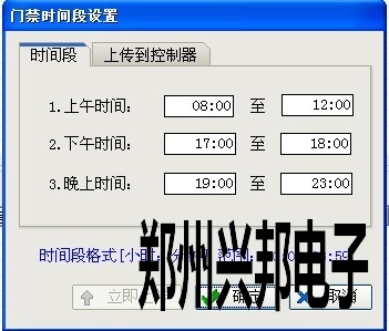 3、設置好要開門的時間段后點擊‘確定’進行保存,點擊‘上傳到控制器’選擇相應控制器點擊‘立即上傳’。