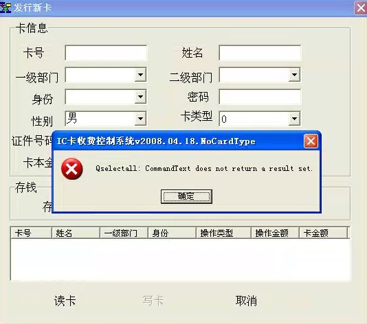 問:485水控機在發行新卡的時候提示錯誤 “Qselectall:CommandText does not return a result set.”