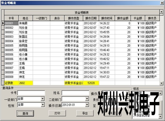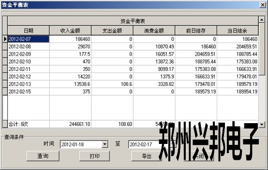 3.數(shù)據(jù)管理-資金明細表中可以根據(jù)標志‘收取卡本金’查詢出收取卡本金合計:52020元,189954.19-52020=137934.19元