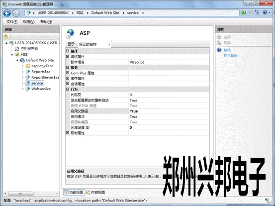 IIS管理器中,展開本地計算機(jī),展開網(wǎng)站,展開Default Web Site,點擊service,雙擊右邊目錄里的asp,啟用父路徑。