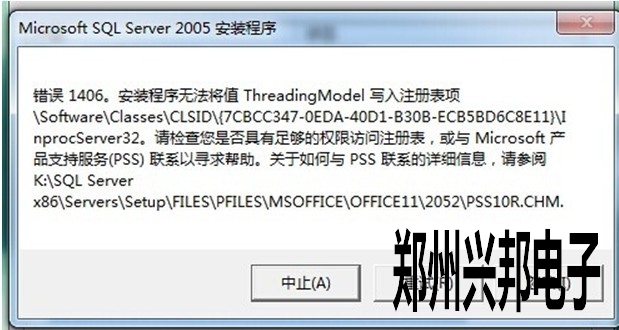 在安裝SQLServer2005時出現(xiàn)SQL server 2005 錯誤 1406. 未能將值 CLSID或ThreadingModel寫入注冊表項(xiàng)\Software\Classes\PROTOCOLS\Handler\ms-help. 怎么辦