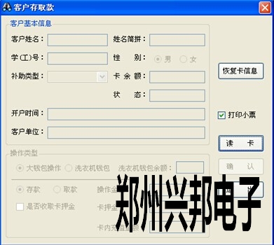 打開軟件 制卡中心-卡管理 在空白處右鍵選定存取款——把卡放在讀卡器的感應區——單擊讀卡。