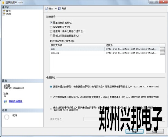 把導(dǎo)入的bak文件勾選上,在指定了要還原的*.bak文件以后,選項---->設(shè)置還原選項--->覆蓋現(xiàn)有數(shù)據(jù)庫(選上),其它默認。