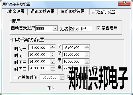 在使用興邦一卡通平臺進(jìn)行用戶高級參數(shù)設(shè)置時包含卡本金設(shè)置、通訊參數(shù)設(shè)置、備份參數(shù)設(shè)置和系統(tǒng)運(yùn)行設(shè)置四個參數(shù)設(shè)置。