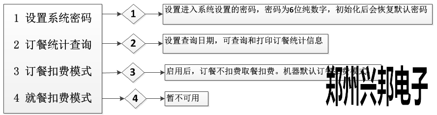 打開中文液晶售飯機。開機,在待機模式下按匯總鍵進入系統功能設置界面,輸入默認密碼123456,進入系統設置界面。
