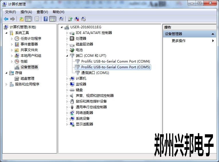 串口號(hào)查看方法,計(jì)算機(jī)右鍵——管理——設(shè)備管理如下圖所示