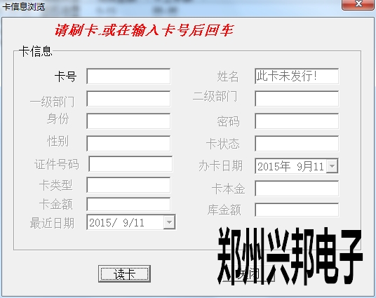 卡片就上面三種狀態(tài),另外一些操作,會(huì)造成卡狀態(tài)改變,比如:掛失的卡解掛,就變成消費(fèi)卡;掛失的卡補(bǔ)辦新卡,掛失卡就會(huì)變成新卡;消費(fèi)卡被收繳舊卡就變成新卡。新卡在消費(fèi)機(jī)上刷卡會(huì)顯示1-Err,消費(fèi)卡會(huì)顯示金額,掛失卡會(huì)顯示4-Err。
