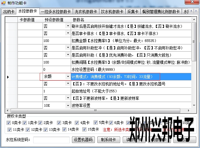基于互聯網一卡通平臺的GPRS水控,在制卡中心--功能卡制作--水控參數卡中,可以看到有三種計費模式