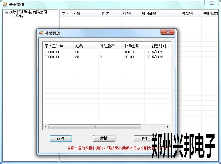 打開互聯網一卡通平臺,進入制卡中心 -- 卡管理。然后鼠標右鍵,選擇 發放前期補助。