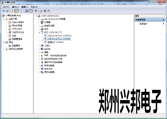 1、單擊計算機(jī)—單擊右鍵—管理—設(shè)備管理—端口。找到所用usb線端口。如下圖: