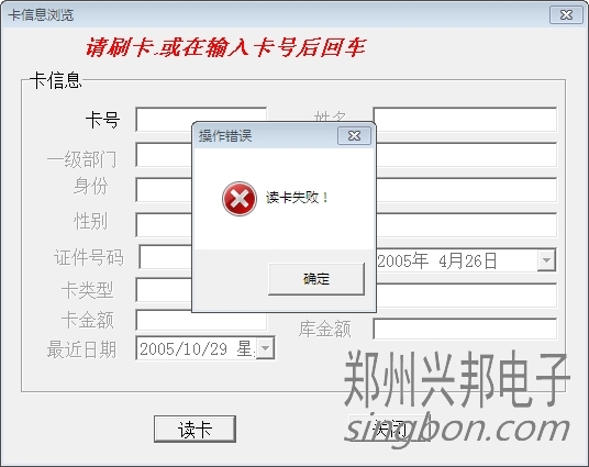 局域網一卡通軟件打開后進行讀卡操作,把IC卡片放在讀卡器上,在軟件卡信息瀏覽頁面點擊讀卡,操作錯誤提示:讀卡失敗!這種情況該如何解決呢?