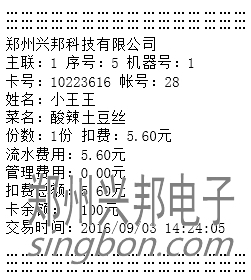 7. 對(duì)一個(gè)用戶卡,小票打印一體機(jī)在本機(jī)上的當(dāng)次明細(xì)以小票的形式打印出來,設(shè)置打印張數(shù),以便客戶報(bào)銷和查賬,進(jìn)行訂餐、取餐、菜單消費(fèi)、直接扣費(fèi)打印小票內(nèi)容各有不同。