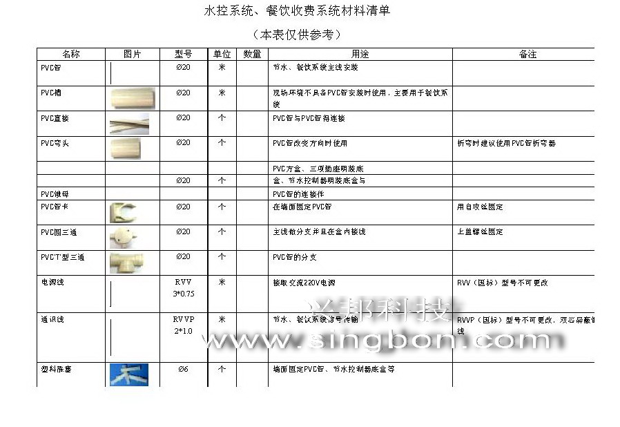 [文章內容簡介]:食堂售飯、消費、水控等系統施工中所需要的材料規格清單。